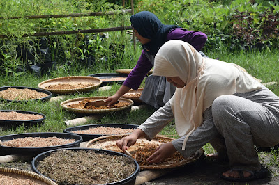mengelola lahan sebelum ditanam, menanam/menurunkan semaian, ngaramas (membuang